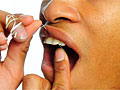 45-degree angle where the teeth meet the gums. Press firmly, and gently rock the