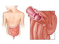 into the abdominal cavity. It may occur in people whose bowel wall has been