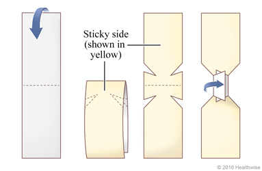 - Unfold the tape, then fold the notched pieces