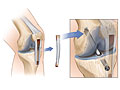 that were drilled in the upper and lower leg bones. The surgeon secures the