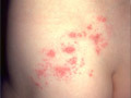 Shingles may be confused with other conditions that cause similar symptoms. The rash from shingles may be mistaken for an infection from herpes simplex virus (HSV), poison oak or ivy, impetigo, or scabies. The pain from PHN may feel like appendicitis, a heart attack, ulcers, or migraine headaches. What HappensShingles is caused by the same virus that causes chickenpox. After an attack of chickenpox, the virus remains in the tissues in your nerves. As you get older, or if you have an illness or stress that weakens your immune system, the virus may reappear in the form of shingles. You may first have a headache, flu-like symptoms (usually without a fever), and sensitivity to light, followed by itching, tingling, or pain in the area where a rash may develop. The pain usually occurs several days or weeks before a rash appears on the left or right side of your body. The rash will be in a band, a strip, or a small area. In 3 to 5 days, the rash turns into fluid-filled blisters that ooze and crust over. The rash heals in about 2 to 4 weeks, although you may have long-lasting scars. A few people won't get a rash, or the rash will be mild. Most people who get shingles will not get the disease again. Complications of shinglesDelaying or not getting medical treatment may increase your risk for complications. Complications of shingles include: - Postherpetic neuralgia (PHN), which is pain that does not go away within 1 month. It may last for months or even years after shingles heals. It is more common in people age 50 and older and in people who have a weakened immune system due to another disease, such as diabetes or HIV infection.