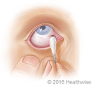 the surface of the eye or inside the eyelid: - Wash your hands before you touch the