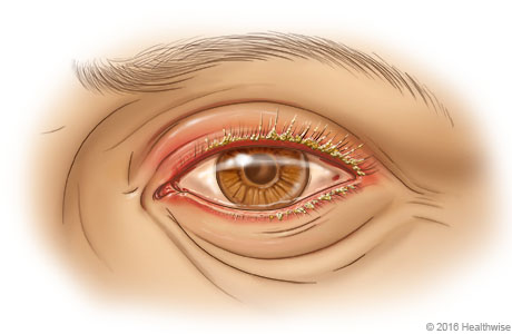 of the eyelids. It causes redness, itchiness, irritation, and scaly skin at